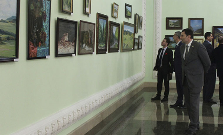 На выставке были представлены живописные полотна чеченских художников.