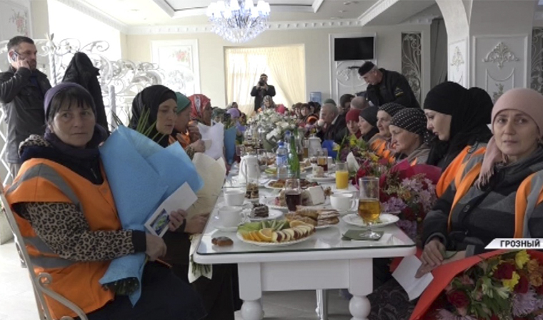 Работниц СУРСАДа пригласили в кафе кондитерскую Париж. Здесь, министерство труда организовало для них праздничную программу. Руководитель социального ведомства и директор департамента по связям с религиозными и общественными организациями поздравили собравшихся с Международным женским днем, отметили их труд. Женщинам вручили цветы и материальную помощь от Регионального общественного фонда имени Первого Президента ЧР Ахмата-Хаджи Кадырова.