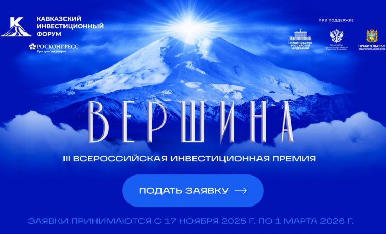 До 1 марта 2026 года продолжается прием заявок на инвестиционную премию «Вершина», которая является одним из ключевых событий Кавказского инвестиционного форума.
