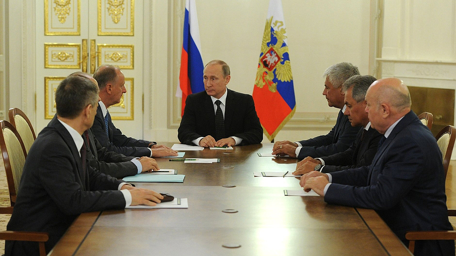 В совещании приняли участие Секретарь Совета Безопасности Николай Патрушев, Министр внутренних дел Владимир Колокольцев, Министр обороны Сергей Шойгу, директор Федеральной службы безопасности Александр Бортников, директор Службы внешней разведки Михаил Фрадков, заместитель Секретаря Совета Безопасности Рашид Нургалиев.